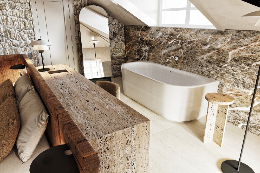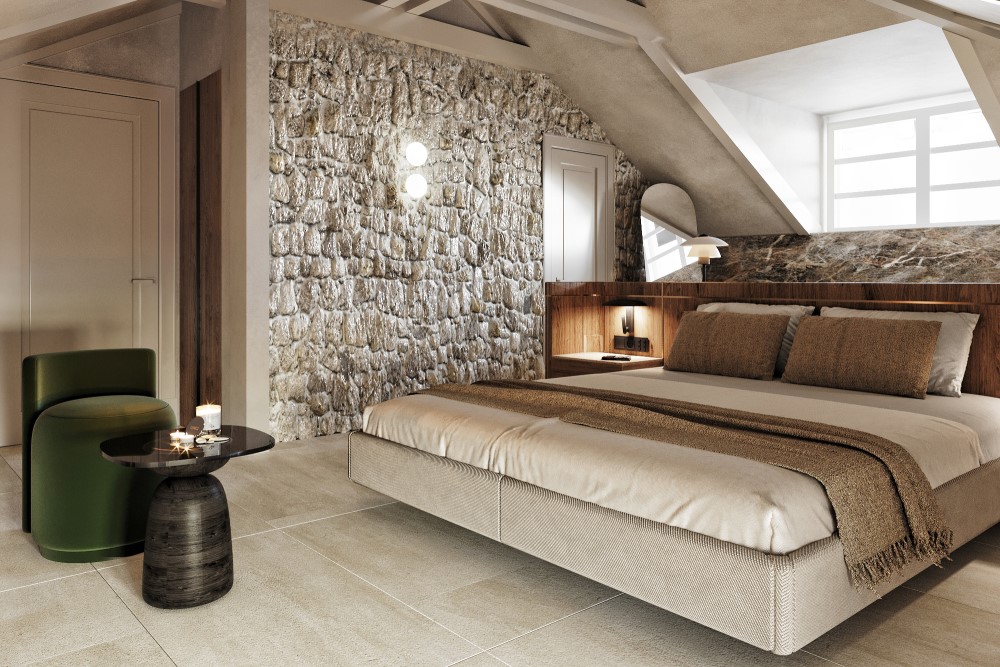 Room Orjen draws its name from the majestic mountain that watches over the Bay of Kotor. As the highest point of Santa Boka’s spatial journey, it reflects the spirit of elevation and serenity. With sloped ceilings, warm textures, and an intimate atmosphere, it offers a quiet retreat that echoes the peaceful strength of its namesake.