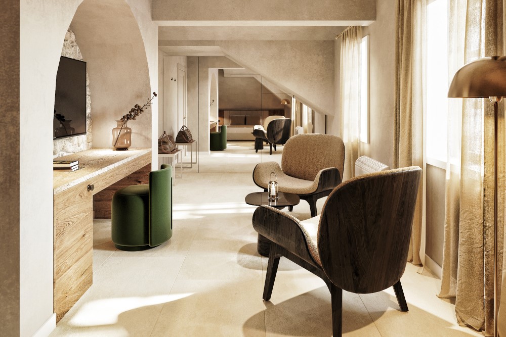 Apartment Periska evokes the quiet mystery of the sea’s hidden treasures. With its sloped ceilings and charming dormer windows, it offers a cozy, elevated retreat — a pearl above, where light and silence come together in perfect harmony. A peaceful sanctuary where time slows and the essence of the sea is quietly felt.
